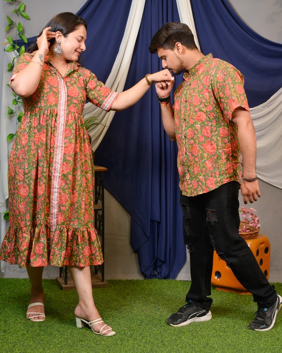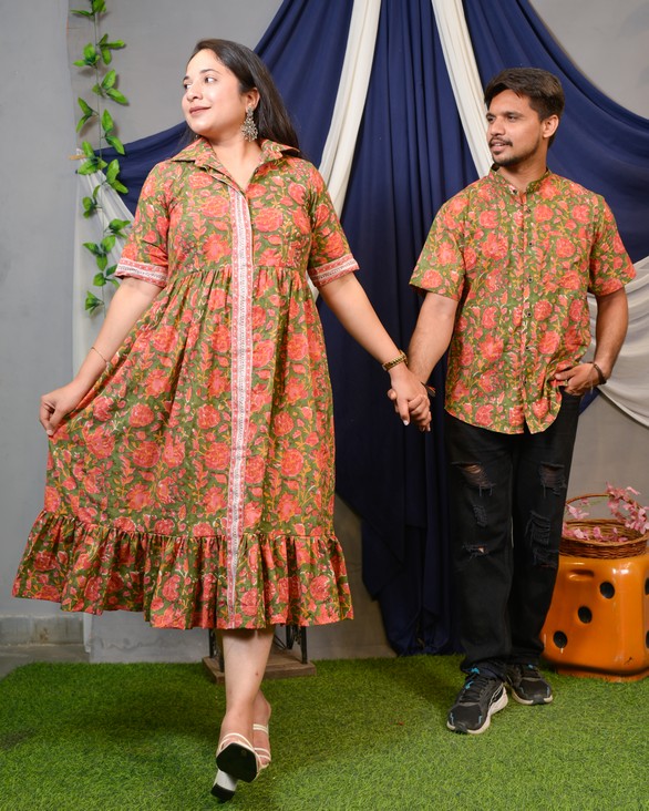 Basil Floral Shirt Dress Couple Set