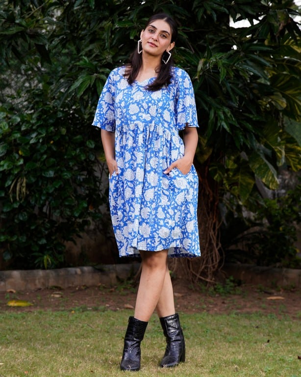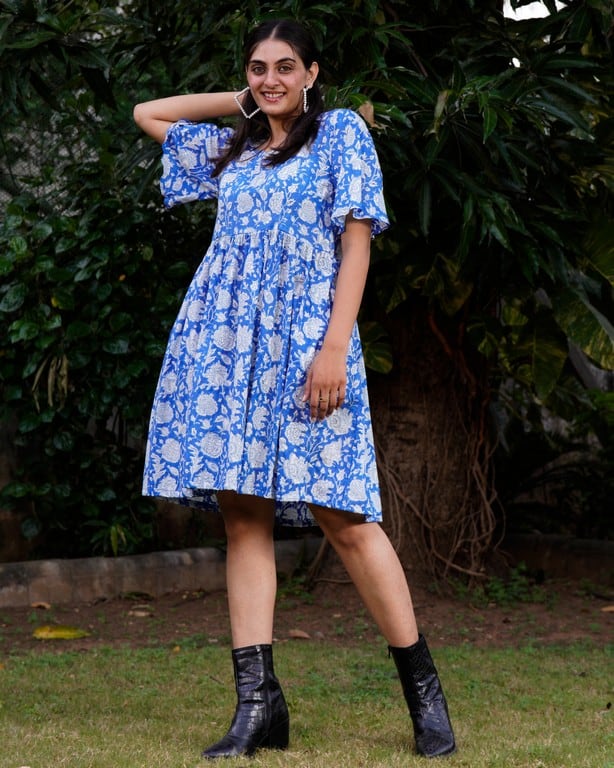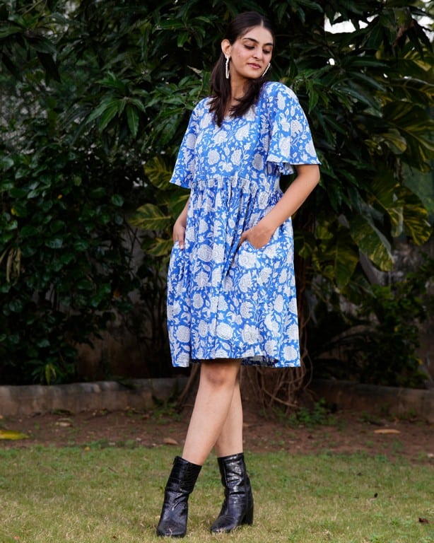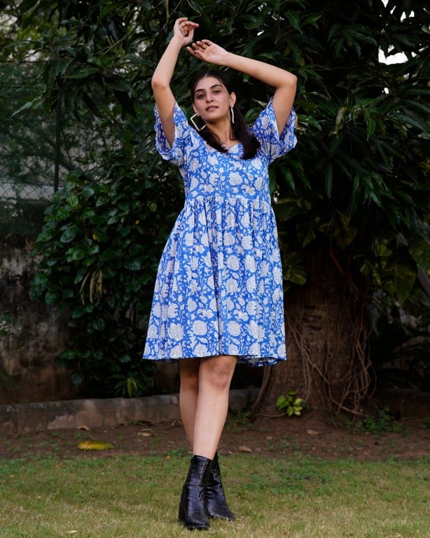 The Blue Bloom Short Dress is a comfortable, stylish and office wear way to elevate your wardrobe. The bell sleeves of this short dress makes it perfect for all seasons and trends. You will no doubt be promoting a laid-back atmosphere with this simple yet elevated piece!