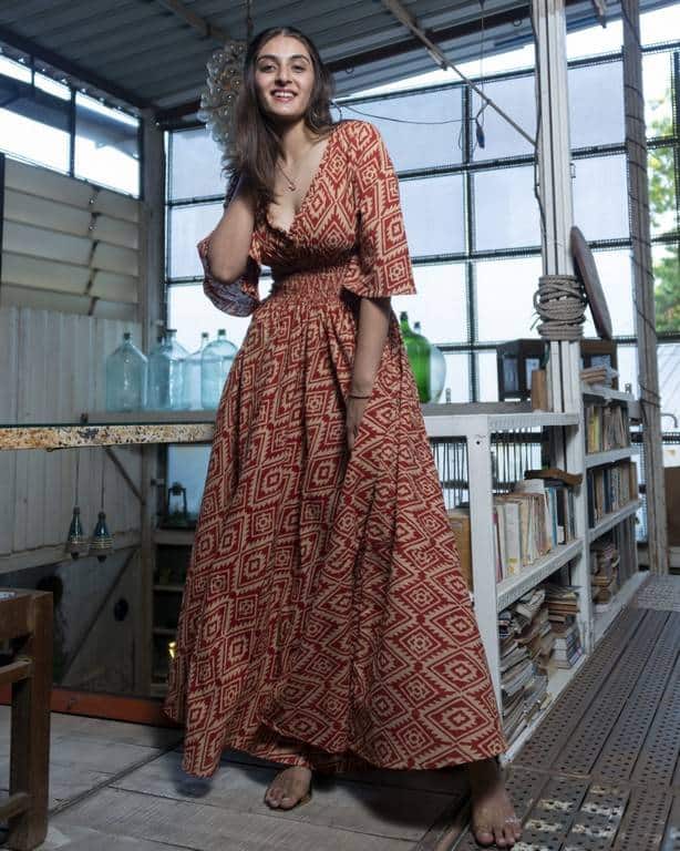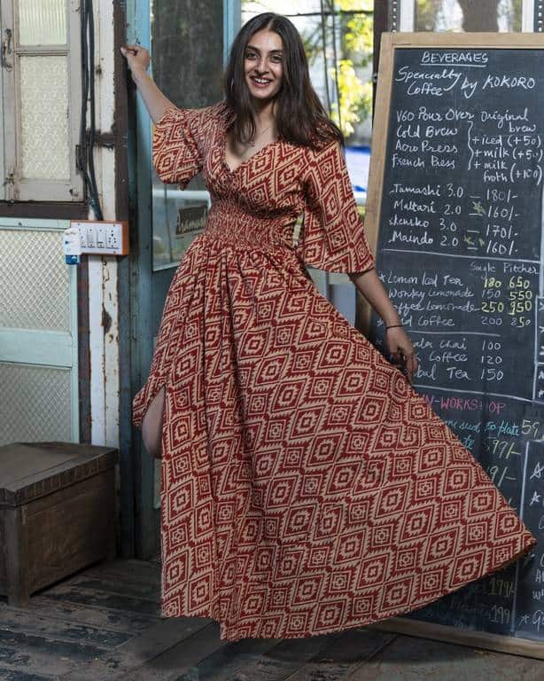 Planning to propose to your Queen on the Beach and surprise her with the best? Start your proposed day planning by gifting her this beautiful Cinnamon Whirl Slit Kirtle. This outstanding cotton outfit is best for Beach day out or Cocktail Parties. Grab your hands on this mesmerizing cotton slit Dress before it gets stuck out.
