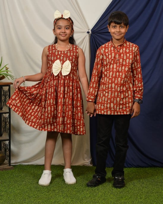 Red Fish Print is a comfortable dress with vibrant colour to suit your personality. The dress is bright and light to wear. A kurta in the same fabric to compliment the dress, perfect for a twinning set for you and yours.