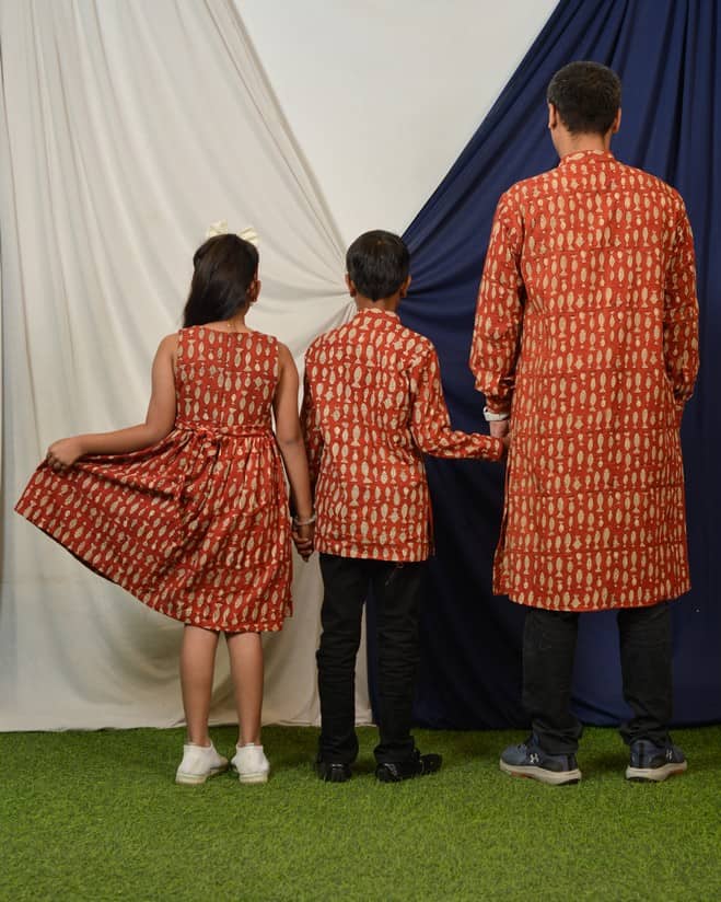 Red fish Long Kurta Father Kid Twining