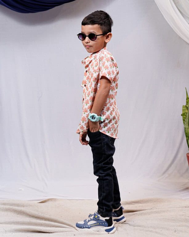 This Swan White Kids Shirt  is the perfect addition to any child’s wardrobe. It is made from a lightweight and breathable cotton  fabric that is soft and comfortable to wear. The shirt features a classic pink color with a floral pattern that adds a touch of color to any outfit. The shirt has a chinese collar and half sleeves and  a full button-down front for easy dressing. The shirt is perfect for any occasion, from school to playtime.