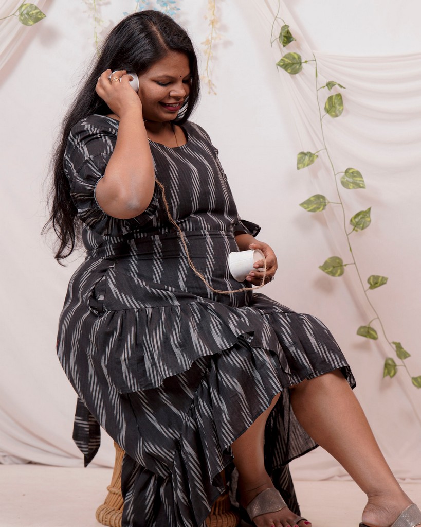 Our signature Concealed Zipper design. A zip on each side of the torso opening from the bottom up along the kotha. Makes for the perfect nursing dress without compromising on the style of the design.