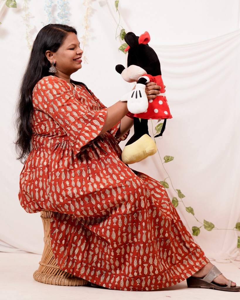 Our signature Invisible Zipper design. A zip on each side of the torso opening from the bottom-up along the kotha. Makes for the perfect nursing dress without compromising on the style of the design.