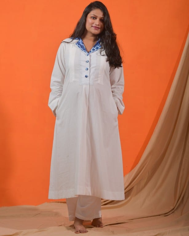 Flaunting your baby bump with style and comfort is all a woman wants. Right young mothers? Our Oceanic White Kurta with Plazzo could be a beautiful and elegant choice for a kurta plazzo outfit. The light, airy shade of white could create a breezy and relaxed vibe, perfect for a summery look. Pair the kurta plazzo with silver or ocean-blue accessories to complete the oceanic theme.
